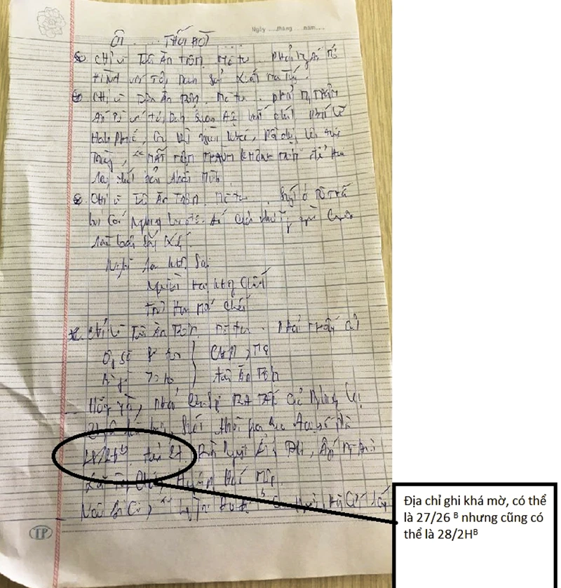 PV báo Pháp Luật TP.HCM đã đi tìm hiểu địa chỉ 26/27 B ấp Mỹ Huề ghi trên lá đơn nhưng không tìm thấy. Tại ấp Mỹ Huề chỉ có duy nhất một hẻm số 27 (ghi rõ trong lá đơn), trong hẻm có khoảng 10 căn nhà.