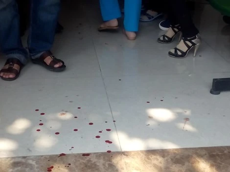 Vết máu củanạn nhân vương trên nền gạch UBND phường