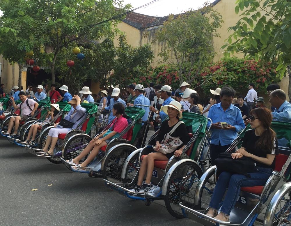 Khách du lịch Trung Quốc tham quan phố cổ Hội An bằng xích lô. Ảnh minh họa