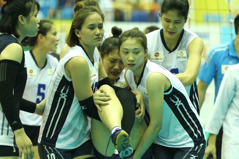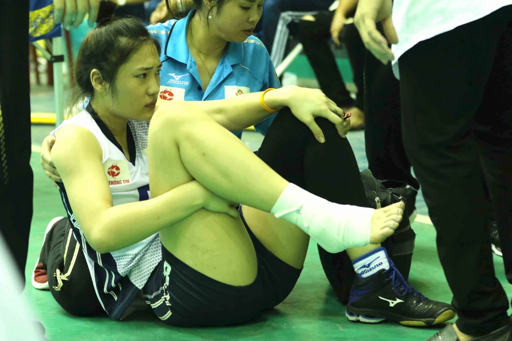 Phụ công Việt Hương dính chấn thương lật cổ chân ảnh hưởng đến sức mạnh của Thông Tin LienVietPostBank. Ảnh: NHƯ HUY