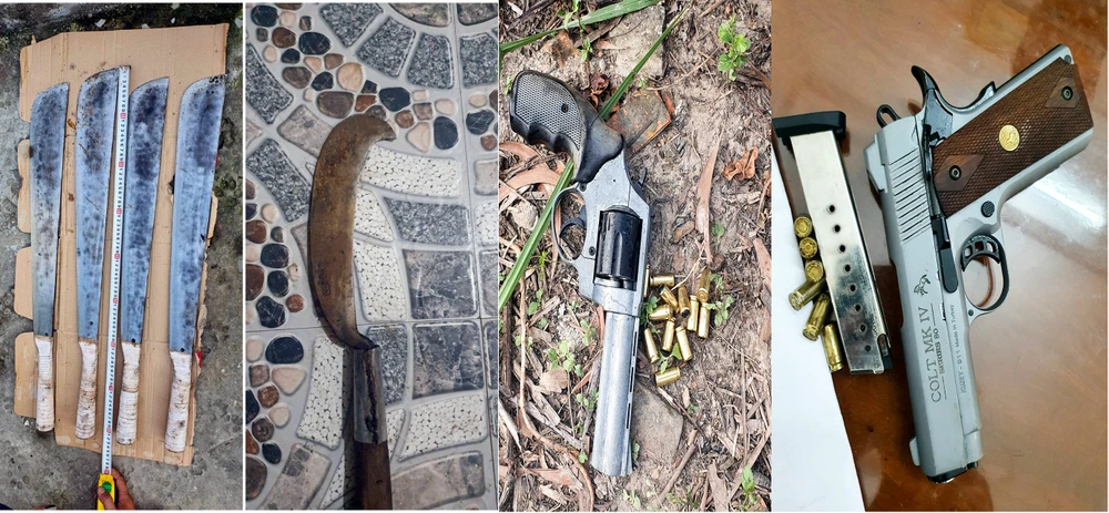 Sau hơn một ngày quyết liệt vào cuộc, lực lượng Công an tỉnh Kiên Giang đã bắt được chín đối tượng trên, thu hồi được sáu dao tự chế, hai khẩu súng bắn cao su, 24 viên đạn và nhiều tang vật có liên quan.