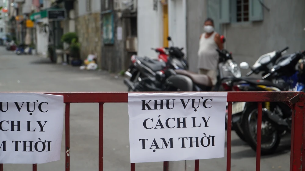 Hẻm 305 Lê Văn Sĩ, phường 13, quận 3, TP.HCM được phong tỏa do liên quan đến ca tái dương tính. Ảnh: Minh Tâm