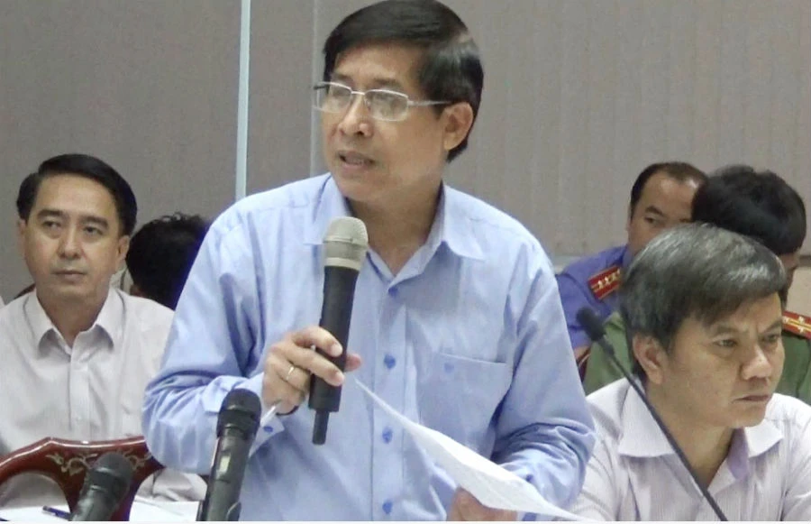Ông Thường trả lời câu hỏi của báo Pháp Luật TP.HCM về dự án lấn sông Đồng Nai. Ảnh: VŨ HỘI