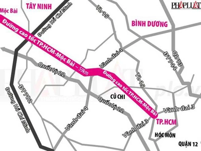 Dự án đường cao tốc TP.HCM - Mộc Bài có quy mô chiều dài toàn tuyến 53,5 km. Mặt cắt ngang bốn làn xe tiêu chuẩn đoạn tuyến từ đường Vành đai 3 (TP.HCM) đến huyện Trảng Bàng (Tây Ninh) và bốn làn xe hạn chế đoạn còn lại. Tổng mức đầu tư 10.688 tỉ đồng, hình thức đối tác công tư (PPP) loại hợp đồng BOT có sự hỗ trợ của Nhà nước (gồm vốn đối ứng từ ngân sách và vốn vay ODA).