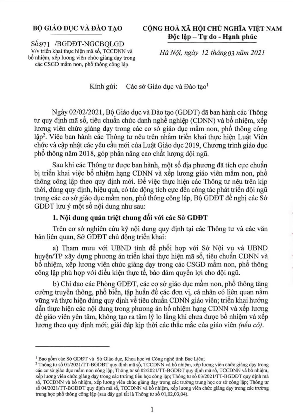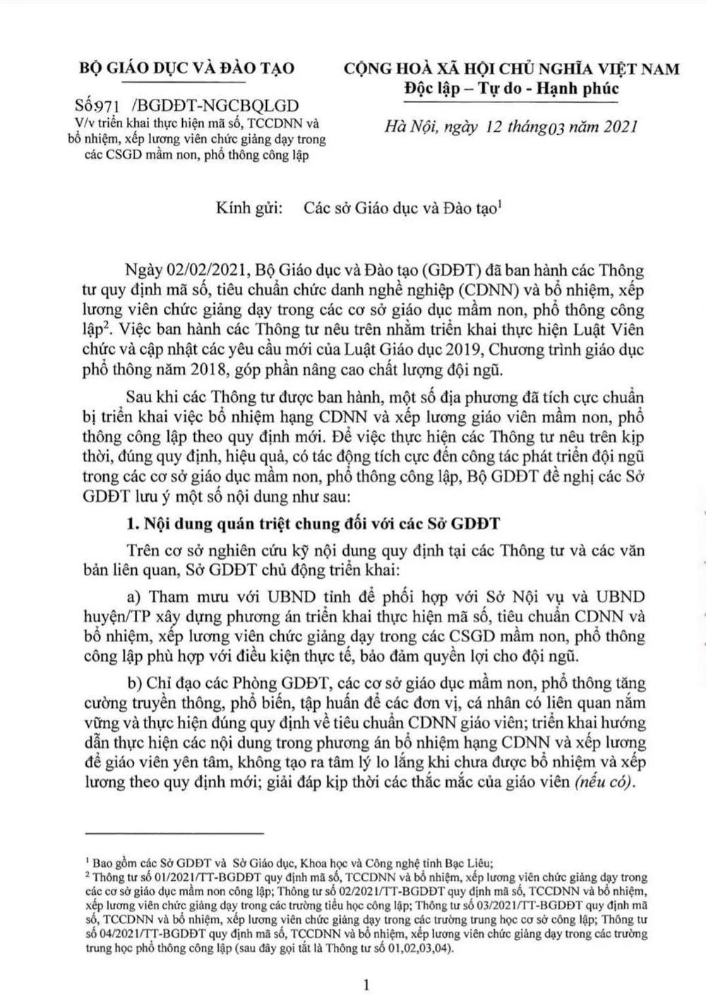 Vừa qua, Bộ GD&ĐT đã ban hành các thông tư quy định mã số, tiêu chuẩn chức danh nghề nghiệp (CDNN) và bổ nhiệm, xếp lương viên chức giảng dạy trong các cơ sở giáo dục mầm non, phổ thông công lập