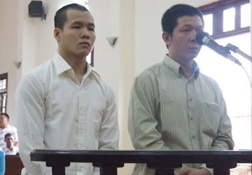 Bị cáo Bằng (phải) và bị cáo Tòng đang trả lời HĐXX tại phiên xử ngày 18-12-2013. Ảnh: PHAN THƯƠNG
