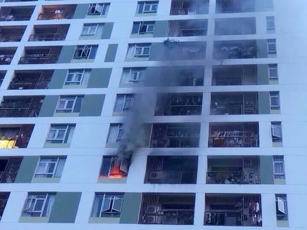 Hỏa hoạn bắt nguồn từ phòng ngủ của căn hộ khóa cửa tại chung cư Parcspring. Ảnh Huyền Phạm