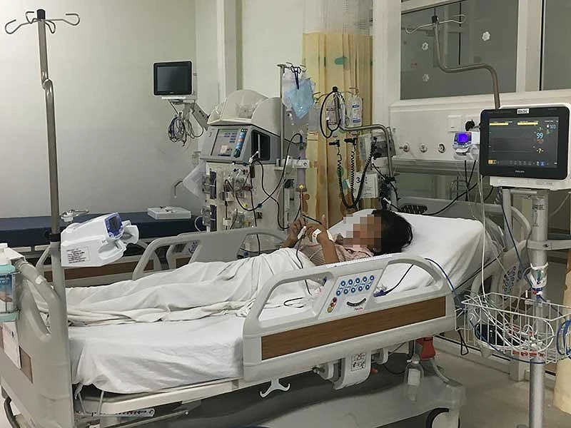 Bé Q. đang được tích cực lọc máu và theo dõi tại bệnh viện. Ảnh: Hoàng Lan