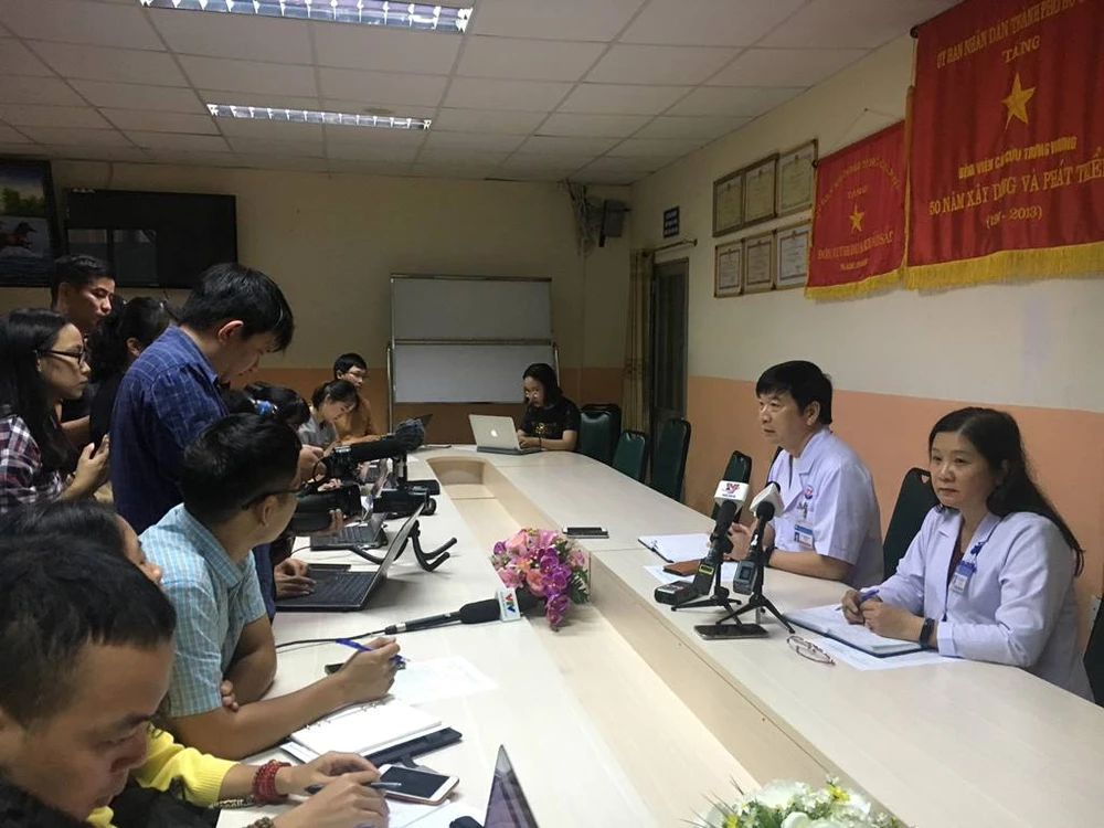 Giám đốc BV Trưng Vương Lê Thanh Chiến thông tin về sự việc bệnh nhân tự sát bằng súng tại BV. Ảnh: HL
