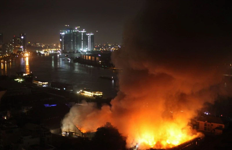Trước đó như chúng tôi đã thông tin khoảng 23 giờ ngày 22-6, một vụ cháy lớn xảy ra trong nhà kho ở gần cảng Sài Gòn, khu vực giao lộ Hoàng Diệu - Nguyễn Tất Thành (quận 4, TP.HCM).
