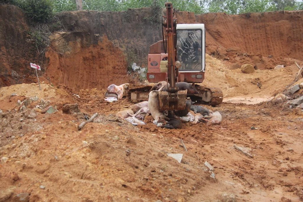 Heo bệnh được chôn lấp tiêu hủy. Ảnh: THANH NHẬT