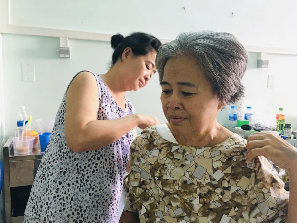 Ngồi lặng lẽ nơi góc hành lang, nhìn vào phòng bệnh nơi mẹ chị đang thiêm thiếp ngủ, chị TA chia sẻ: “Mẹ tôi lớn tuổi rồi nhưng bà rất khỏe mạnh. Bà dậy từ 3 giờ sáng phụ vợ chồng tôi bán phở, nuôi cháu, bà vui. Giờ phải nằm một chỗ vậy, tù túng, bà quạu. Tôi chỉ lo di chứng sau này”.