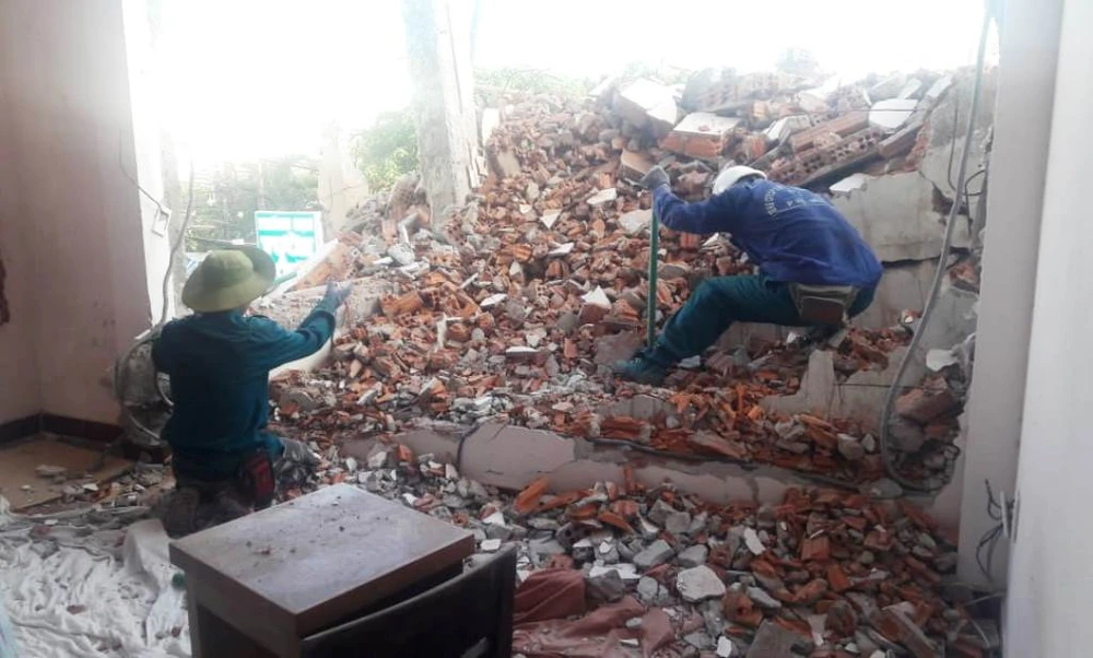 Việc tháo dỡ này đã gây sập nhà bên cạnh, đơn vị thi công đang thương lượng đền bù.