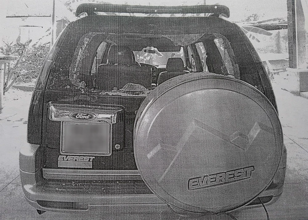 Chiếc ô tô bị ném vỡ kính chắn gió phía sau.