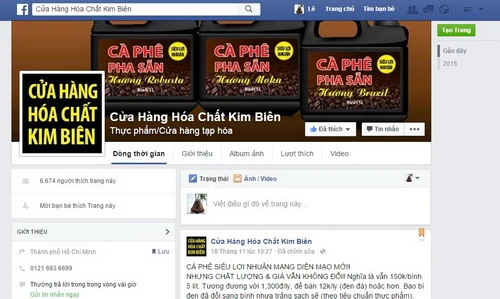 Ngày 26-11, PV Pháp Luật TP.HCMnhắn tin qua Facebook “Cửa Hàng Hóa Chất Kim Biên” đề nghị giao một bình cà phê pha sẵn thì chủ tài khoản không đồng ý và nói: “Bạn lấy năm bình đi, chứ một bình mình không giao”. Chúng tôi đề nghị nếu người bán không giao thì chúng tôi sẽ đến tận nơi lấy hàng nhưng không được phản hồi. Lát sau, chúng tôi liên hệ lại và đồng ý lấy năm bình nhưng cũng không nhận được phản hồi từ phía chủ tài khoản Facebook trên. Chúng tôi liên hệ lại với số điện thoại công bố thì người nghe máy chỉ nói “lộn số rồi” rồi cúp máy, sau đó không nghe máy nữa.