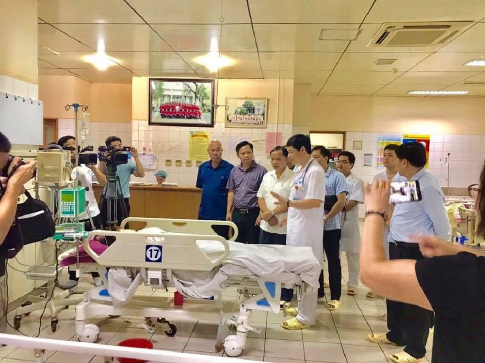 Đại diện UBND tỉnh Hòa Bình, Sở Y tế tỉnh Hòa Bình thăm hỏi tình hình sức khỏe bệnh nhân tại bệnh viện.