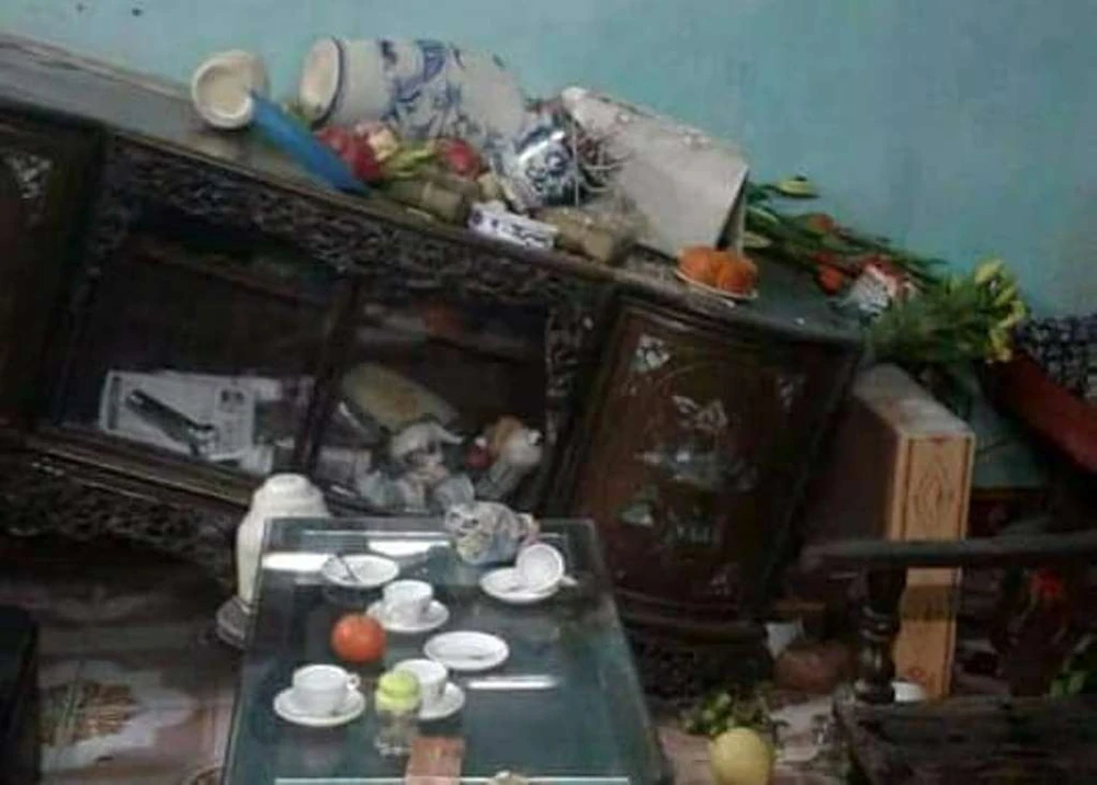 Bàn thờ gia tiên nhà ông Tiếp bị nhóm đối tượng đạp phá