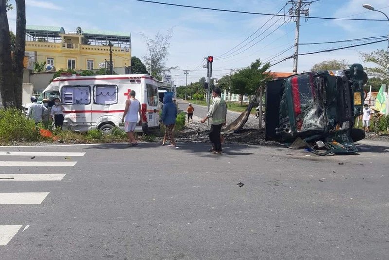 Khi đến giao lộ Phạm Văn Cội – Bùi Thị Điệt, xe cấp cứu bất ngờ xảy ra va chạm với xe tải ở phần đường cắt ngang.