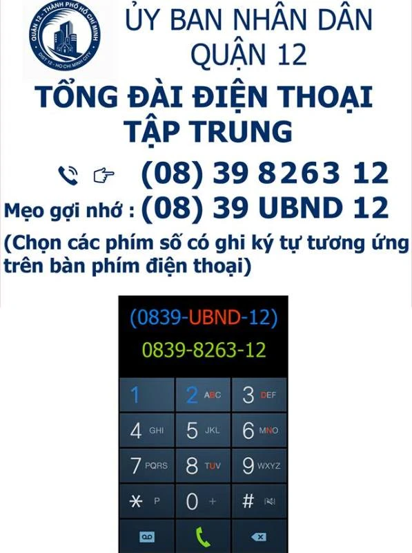 Thông báo tổng đài quản lý tập trung của UBND quận 12