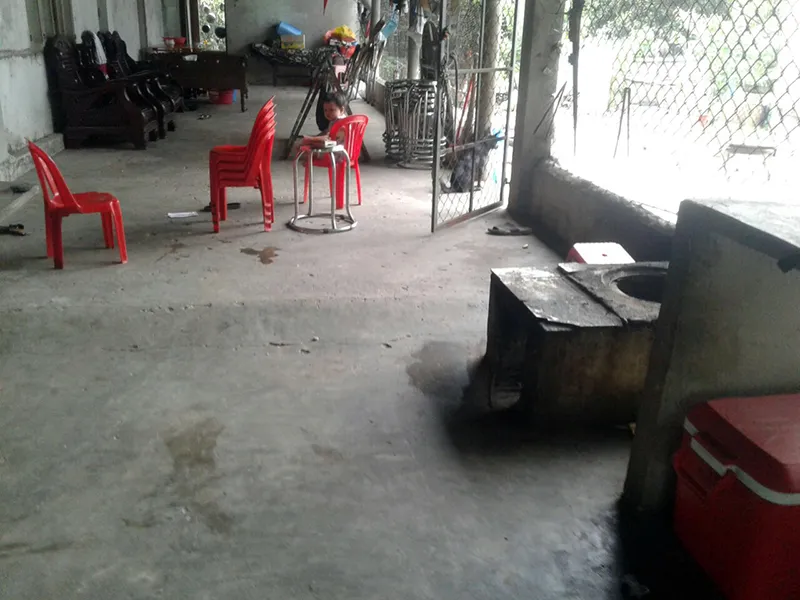 Tại nhà bà Bích, theo quan sát, hiện trường nơi bà bị ngã là khoảng sân nơi bà đặt bếp nấu đồ ăn bán cho khách. Sân nền gạch và xi măng cao rộng rãi, khô ráo, là nơi buôn bán, không trơn trượt, không ẩm thấp. Vệt máu dài rộng còn in rõ trên nền bếp, vẫn còn nguyên màu máu.
