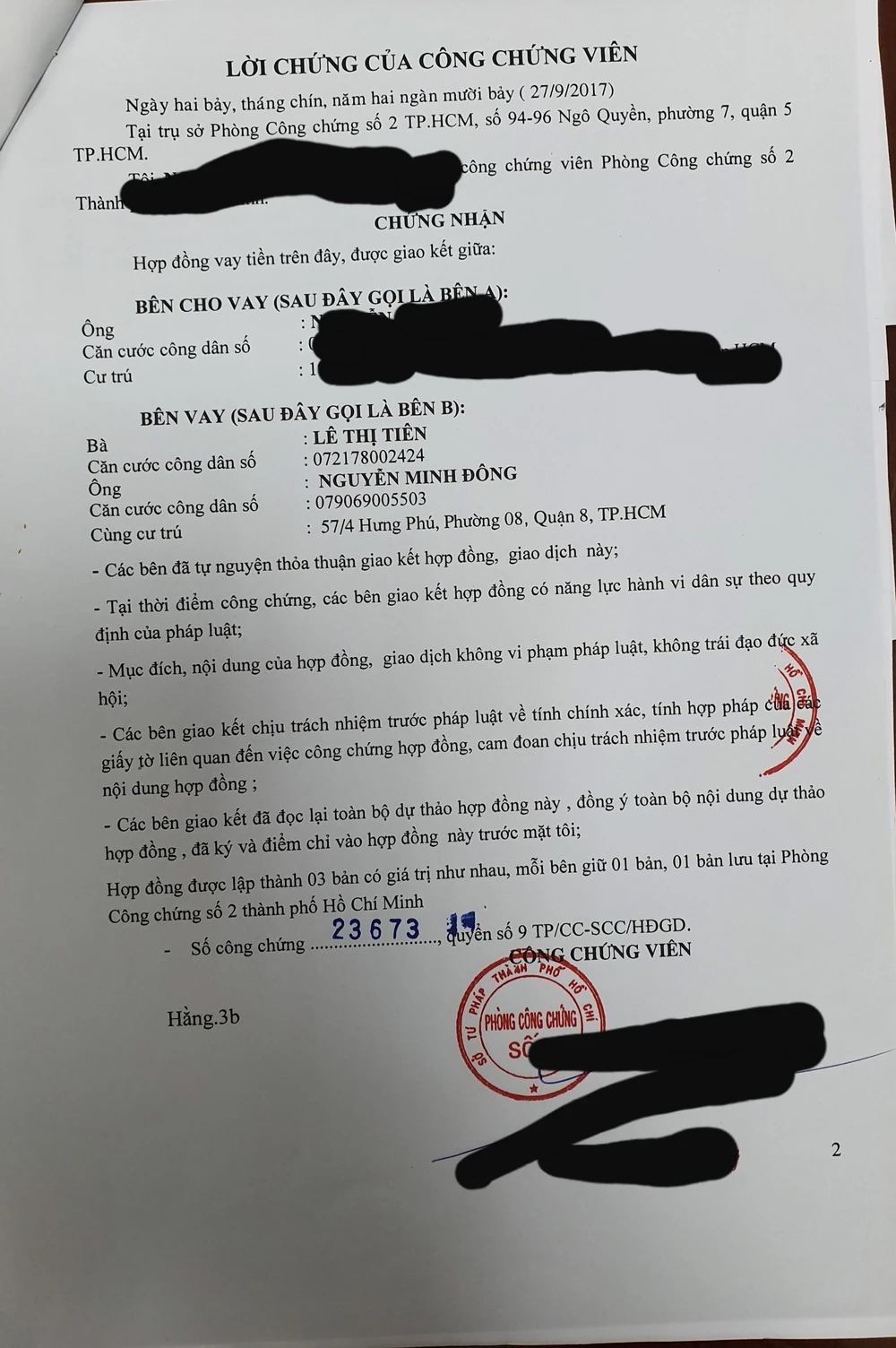 Đây là những giao dịch dân sự tự nguyện và hợp pháp theo quy định pháp luật khi người dân yêu cầu công chứng. Hồ sơ lưu trữ cũng thể hiện công chứng viên PCC số 2 chỉ chứng nhận hợp đồng vay tiền giữa cá nhân với nhau, không có chứng nhận việc vay tiền và thế chấp tài sản bằng giấy tờ nhà, đất giả.
