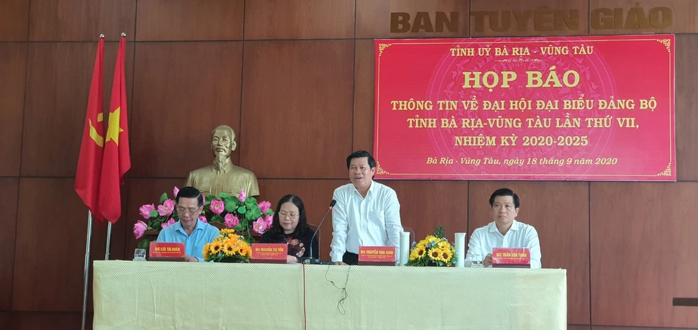Ngày 18-9, Tỉnh ủy tỉnh Bà Rịa- Vũng Tàu tổ chức họp báo thông tin chính thức về thời gian tổ chức, công tác chuẩn bị, văn kiện, báo cáo chính trị trình tại Đại hội đại biểu Đảng bộ tỉnh Lần thứ VII, nhiệm kỳ 2020-2025 sắp tới.