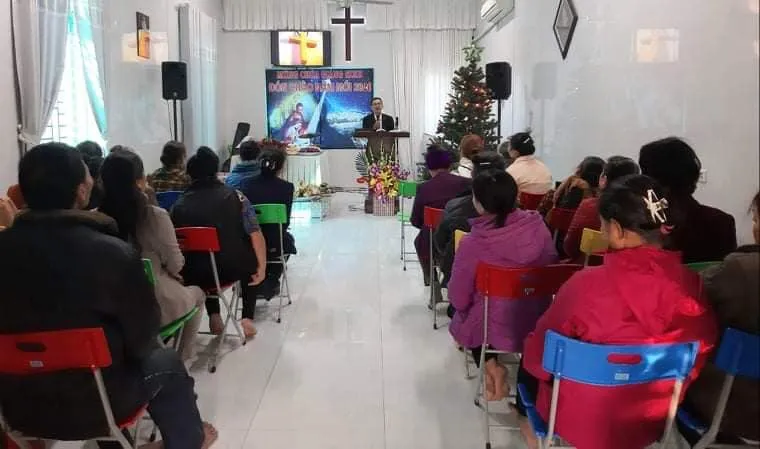 Một buổi sinh hoạt của các tín đồ với mục sư Phương Văn Tân vào dịp Giáng sinh 2020. Ảnh: Facebook nhân vật