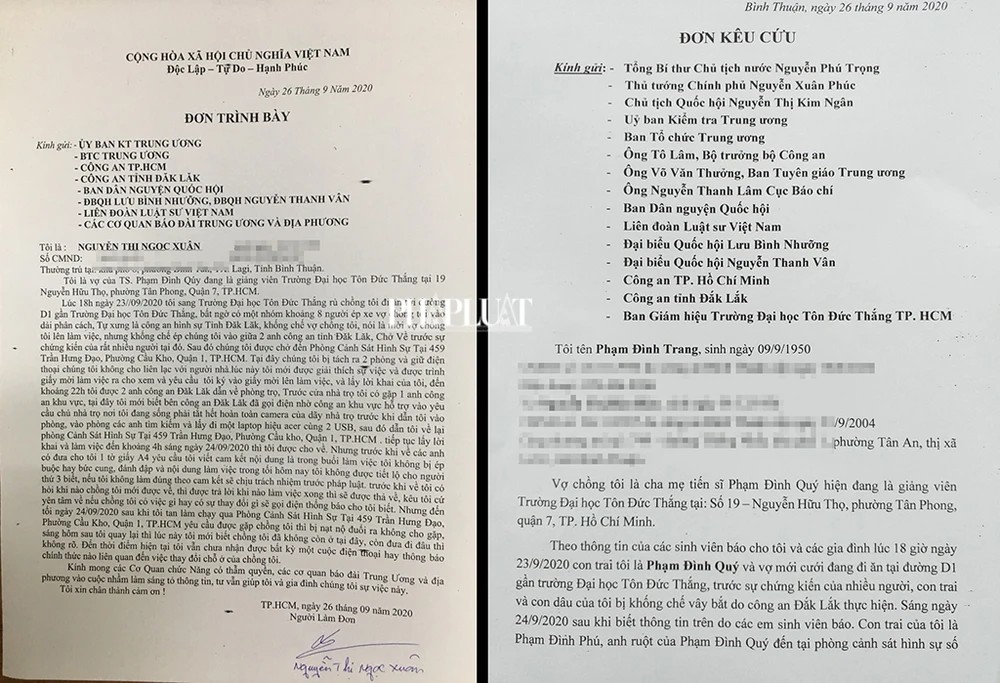 Liên quan việc mời và tạm giữ TS Quý, ngày 28-9, ông Phạm Đình Trang (ngụ phường Tân An, thị xã La Gi, tỉnh Bình Thuận - cha của TS Quý), cho biết vợ chồng ông vừa gửi đơn kêu cứu lên nhiều cơ quan chức năng về việc con trai ông bị công an đưa đi mà không rõ lý do.