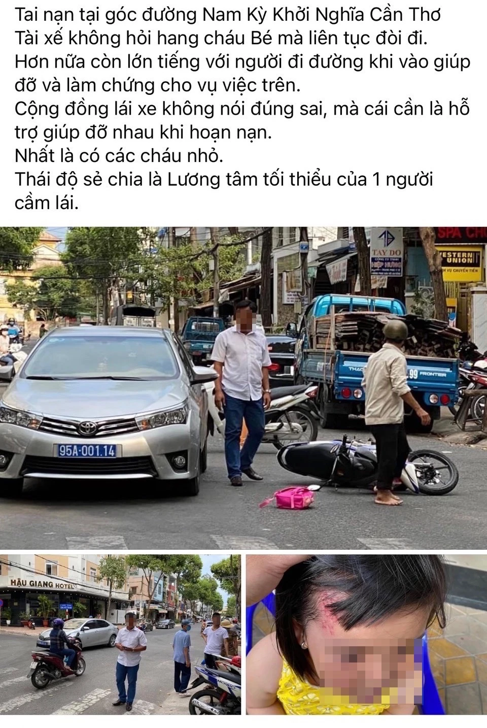 Theo dòng trạng thái trên Facebook, phương tiện này va quẹt với một người đàn ông chở con nhỏ. Thế nhưng tài xế không hỏi thăm tình hình người bị nạn là cháu bé, ngược lại có thái độ lớn tiếng, thậm chí đòi rời khỏi hiện trường.