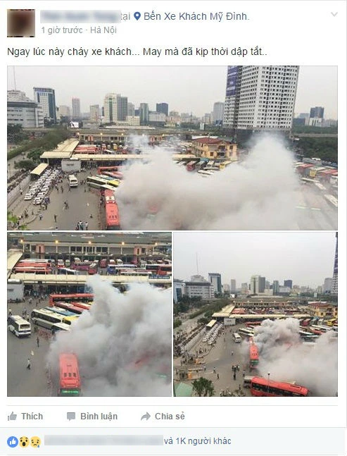 Thông tin cháy xe khách tại Bến xe Mỹ Đình được chia sẻ trên mạng xã hội.