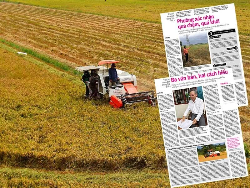 Khi giải quyết hồ sơ chuyển nhượng đất trồng lúa thì cần hiểu rõ quy định và những hướng dẫn liên quan, không nên áp dụng sai mà làm khó cho dân. Trong ảnh: Người dân thu hoạch lúa ở Hậu Giang. Ảnh: TIẾN QUÂN