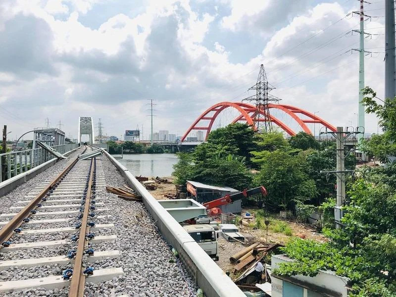Cầu đường sắt Bình Lợi mới sẽ thông tuyến vào ngày 14-9. Ảnh: ĐÀO TRANG
