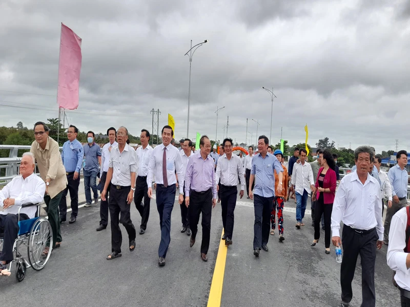 Trong ngày thông xe, không giấu được niềm vui mừng, ông Trần Hoàng Hùng (80 tuổi, người dân xã Ngũ Hiệp) chia sẻ: "Xã Ngũ Hiệp nằm ở cù lao cách trở, bao đời nay người dân qua sông phải lụy đò, lụy phà tốn chi phí và thời gian.