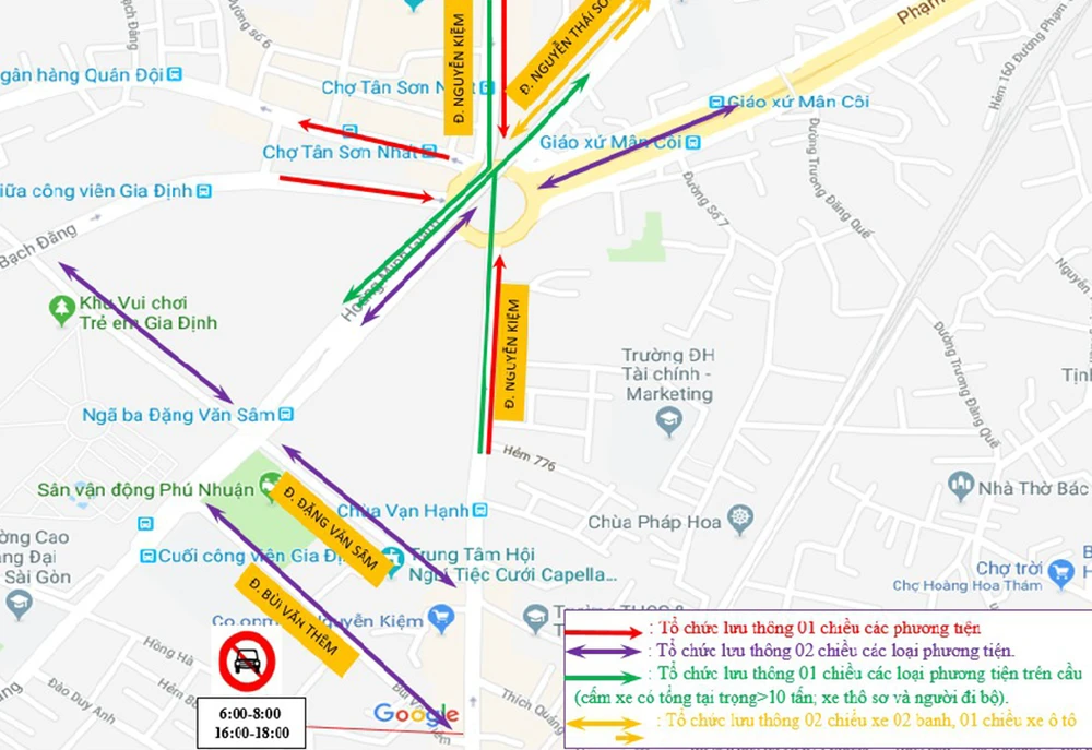 Trên đường Bùi Văn Thêm, tổ chức lưu thông hai chiều các loại phương tiện. Cấm ô tô lưu thông trên đường Bùi Văn Thêm theo hướng từ đường Nguyễn Kiệm về đường Hoàng Minh Giám từ 6h-8h và 16h-18h.