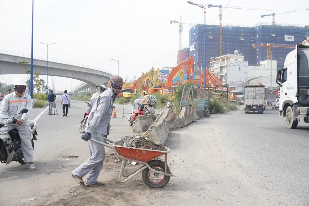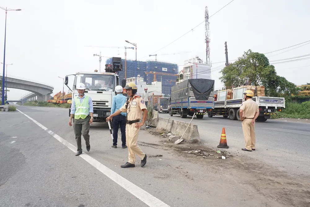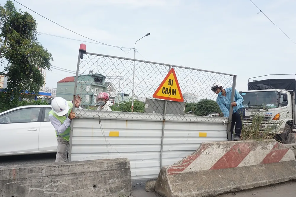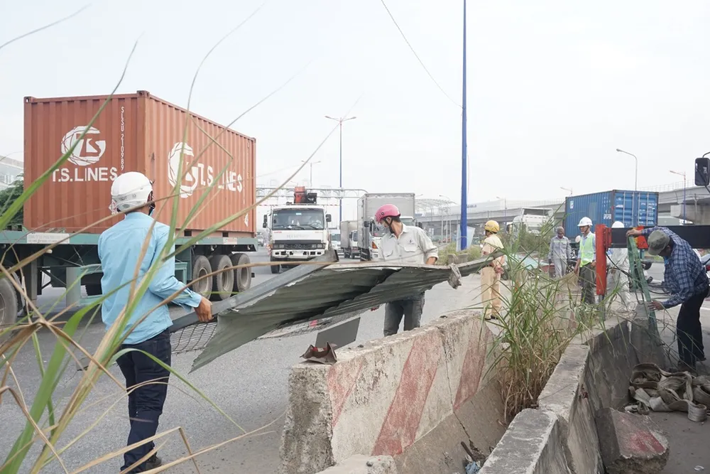 Trước đó, tại phía cây xăng Bình Thắng, công tác gỡ rào chắn và lắp lại rào chắn đúng làn đường được tiến hành khẩn trương. Tất cả phương tiện từ hướng TP.HCM-Dầu Giây sẽ đi vào làn đường vừa thông, hướng ngược lại thìcác tài xế vẫn lưu thông trên tuyến đường song hành (dọc tuyến metro) với ba làn xe.