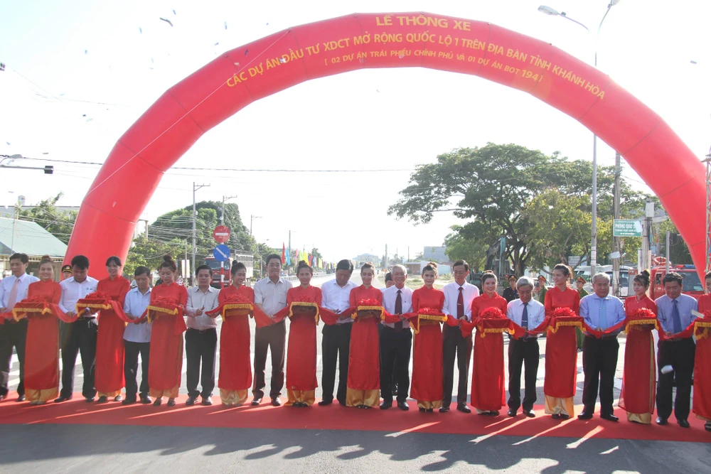 Cắt băng khánh thành dự án đầu tư xây dựng mở rộng quốc lộ 1 đoạn qua tỉnh Khánh Hòa. Ảnh: NN
