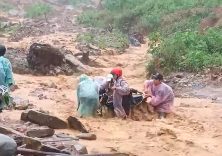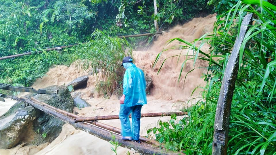 Chiều 11-9, mạng xã hội (facebook) lan truyền các đoạn clip ghi lại cảnh hai nhóm người ở vùng cao Quảng Nam băng qua dòng lũ đang chảy cuồn cuộn thu hút sự chú ý của cộng đồng mạng.