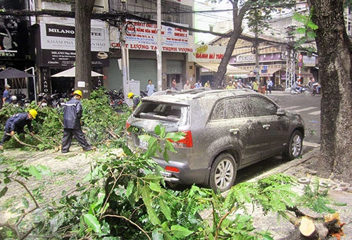 Trưa 19 - 7, một nhánh cây Điệp ở độ cao khoảng 10 mét bất ngờ rơi xuống ở giao lộ Mạc Đĩnh Chi - Nguyễn Văn Thủ (quận 1, TP.HCM). Ít nhất hai chiếc ô tô đậu gần đó đã bị nhánh cây rơi đè lên gây hư hại.