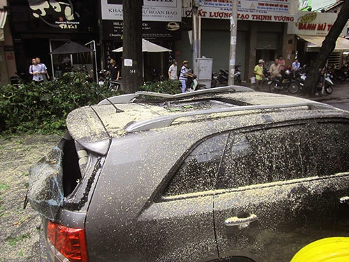 Ghi nhận tại hiện trường, nhánh cây Điệp có đường kính gần 0,5 mét, tán dài hơn 10 mét rơi từ độ cao khoảng 10 mét xuống đất. Hai ô tô đậu gần đó hư hỏng. Đặc biệt, ô tô biển số 61A - 012.61 do anh Nguyễn Văn Sơn cầm lái bể nát phần kính sau, phần trần xe móp, mép. Giao thông rơi vào tình trạng ùn tắc nghiêm trọng khi nhánh cây đổ xuống nằm choáng hết đường.
