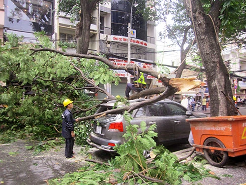 Ô tô bị nhánh cây rơi đè lên gây hư hại