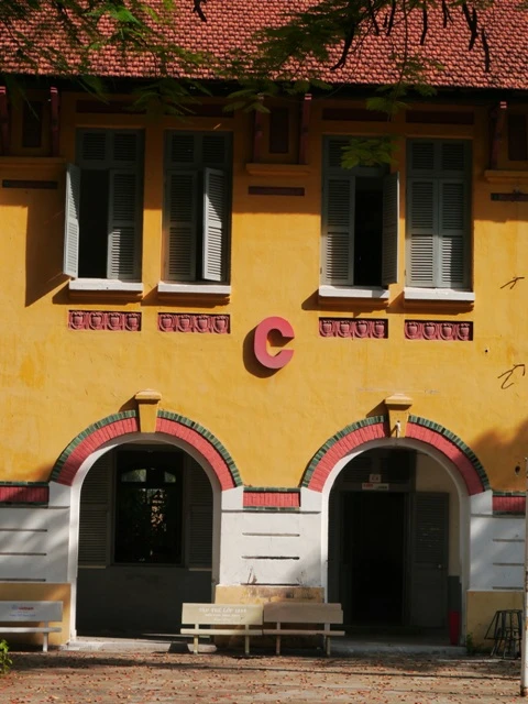 Trường THPT Marie Curie được phối với các tông chủ đạo là đỏ, vàng và trắng, vẽ nên một cảm giác nhẹ nhàng, mơn man hết sức thơ mộng của lứa tuổi học trò