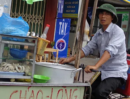 Người nhập cư về Sài Gòn luôn mang và giữ nguyên cả cách mặc áo, quần và đội mũ. Như anh bạn bán cháo lòng dọc theo hai bờ kênh Nhiêu Lộc – Thị Nghè này đội nguyên chiếc mũ cối trên đầu. Em có nhớ, ở Hà Nội, những người đội mũ cối như thế thường được gọi là “lính quân khu Thủ đô”. Anh ta đạp xe cùng khắp phố, bán cháo lòng kiểu Sài Gòn (dồi chiên dòn và có cả bì heo) nhưng vẫn cứ rao sang sảng: “Cháo ‘nòng’ quân khu đây! Mời các bác xơi!”. Vui phết, em nhỉ?
