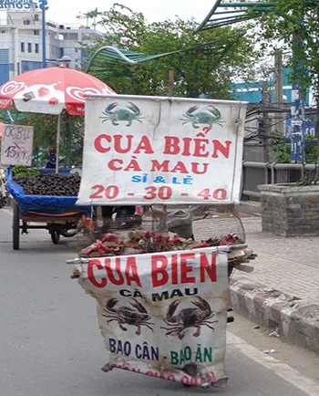 “Cua biển Cà Mau, ăn mau chóng nhớn đây! Mại zdô, mại zdô… bà con ơi!”. Anh chàng người Hải Phòng, chạy con xe 81 nát tanh bành, chở cua đi bán rao mời như thế. Gặp nhau, nói chuyện vài câu, anh bạn kéo anh vào lề đường thẽ thọt những lời ngọt như mía lùi và “vận” thêm vài câu từ bài hát “Thành phố hoa phượng đỏ” vào bài tiếp thị của mình: “Bác biết không? Mấy bác ở Kiên Giang, Cà Mau, miền Tây nhờ ăn mấy con cua này nên đều ra Trung ương làm nhớn cả! Bác mua vài cân ăn đi. Hôm nay bé nhỏ nhưng mai sẽ… nhớn liền đó!”