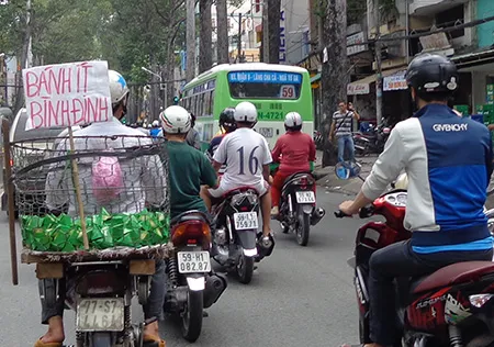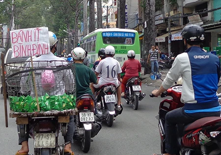 Nên giờ nhìn vào biển số xe là dễ biết người từ đâu nhập cư vào Sài Gòn lắm em ạ! Đây như anh bạn bán bánh ít Bình Định chạy con xe biển số 77 này đích thị là vô Sài Gòn từ Bình Định rồi! Đến đây anh nhớ lời má hay răn chị Hai ngày xưa: “Muốn ăn bánh ít lá gai/ Lấy chồng Bình Định cho dài đường đi!”. Giờ thì những anh hai Trầu, đi con xe 77, bán bánh ít chạy khắp Sài Gòn nên muốn ăn bánh ít hay lấy chồng Bình Định thì chẳng còn sợ đường dài nữa em nhỉ?