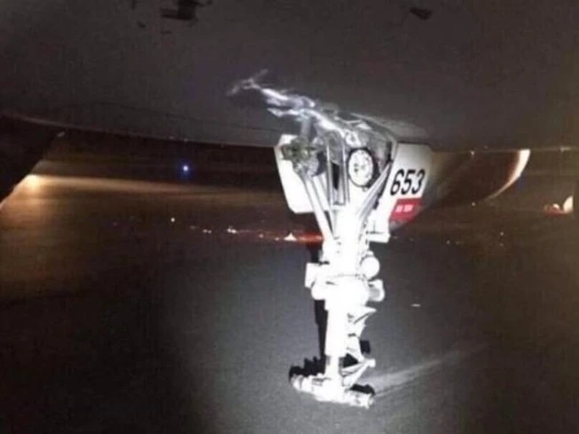 Hai bánh trước bị sút khiến máy bay VJ356 của VietJet Air phải hạ cánh bằng càng.