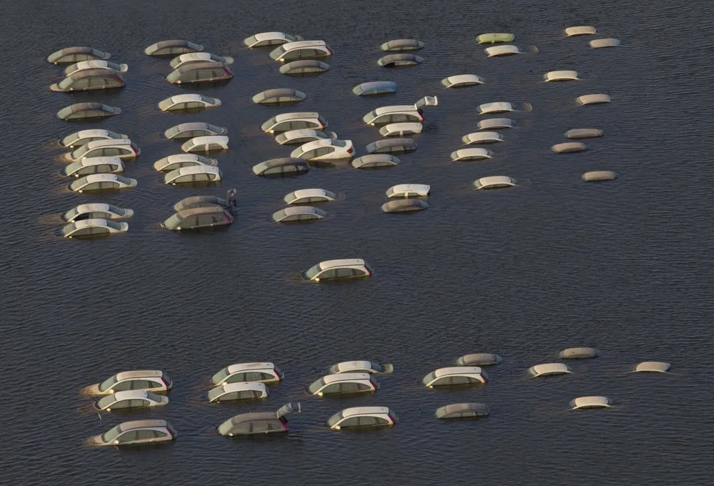 Xe hơi như những cái xác phơi thây trên đường sau khi bị dòng nước lũ nhấn chìm (2011) (ảnh: Business Insider)