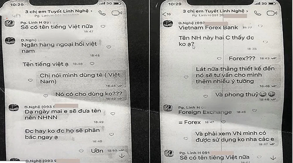 Hình ảnh trao đổi trong nhóm chat mà bà Tuyết là nạn nhân. Ảnh: CA
