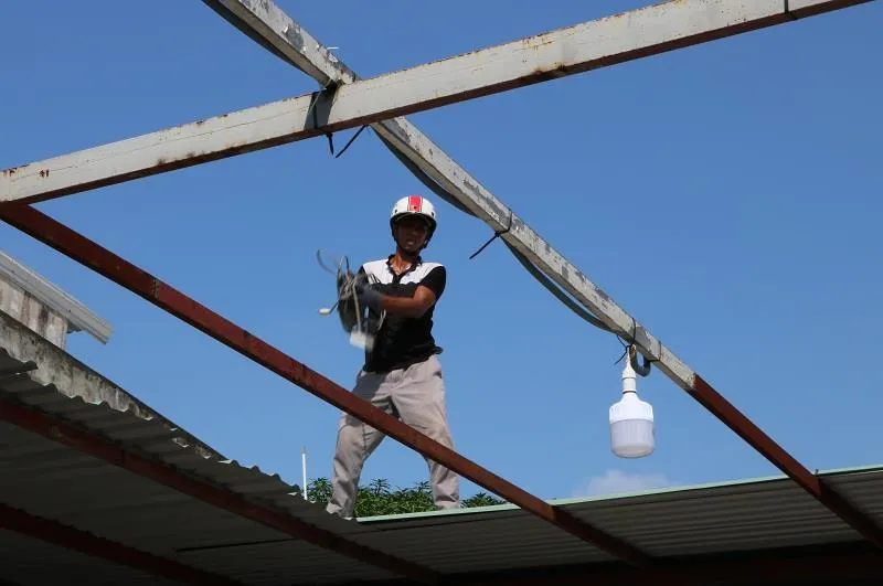 Các công nhân tiến hành tháo dỡ công trình vi phạm bị cưỡng chế. Ảnh: THANH TUYỀN