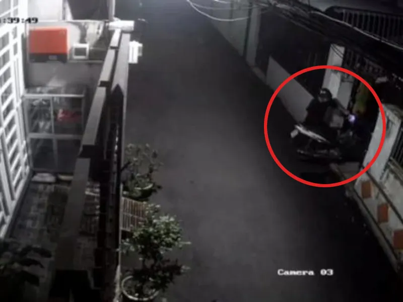 Trộm đang lấy trộm xe máy của gia đình bà H. và bị camera ghi lại. (Ảnh cắt từ camera an ninh)