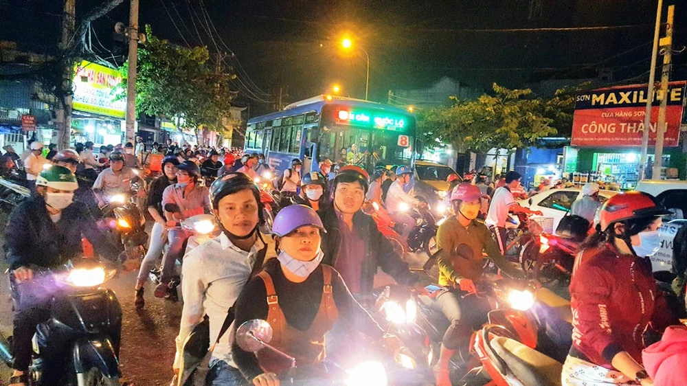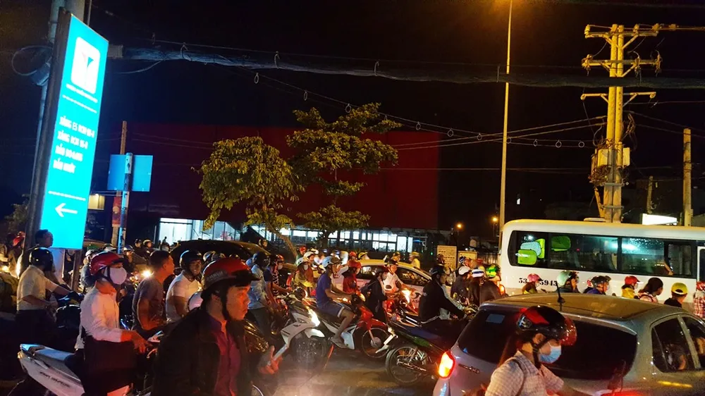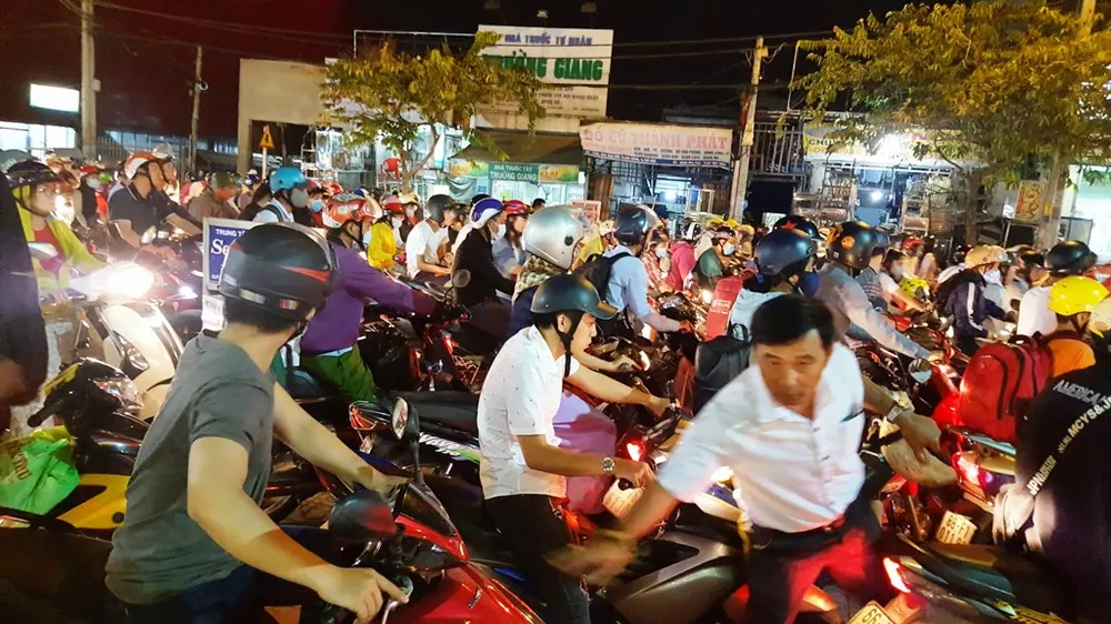 Dòng người kéo dài đến chợ Thủ Đức vẫn chưa tìm ra lối thoát.